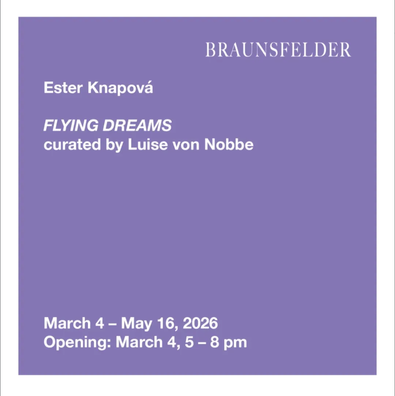 4. březen 2026 – 16. květen 2026 Ester Knapová / Flying dreams BRAUNSFELDER Geisselstrasse 84 - 86 50823 Cologne Germany Kurátorka: Luise von Nobbe