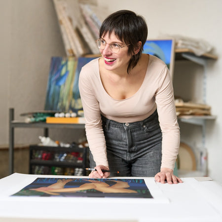 Každé dílo je jedinečný kus současného českého, nebo slovenského umění. Doprava po celé ČR je zdarma, za příplatek zařídíme doručení kamkoli v EU. V případě dotazů nám pište na jakub@100ks.cz.