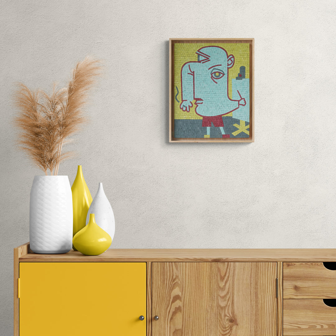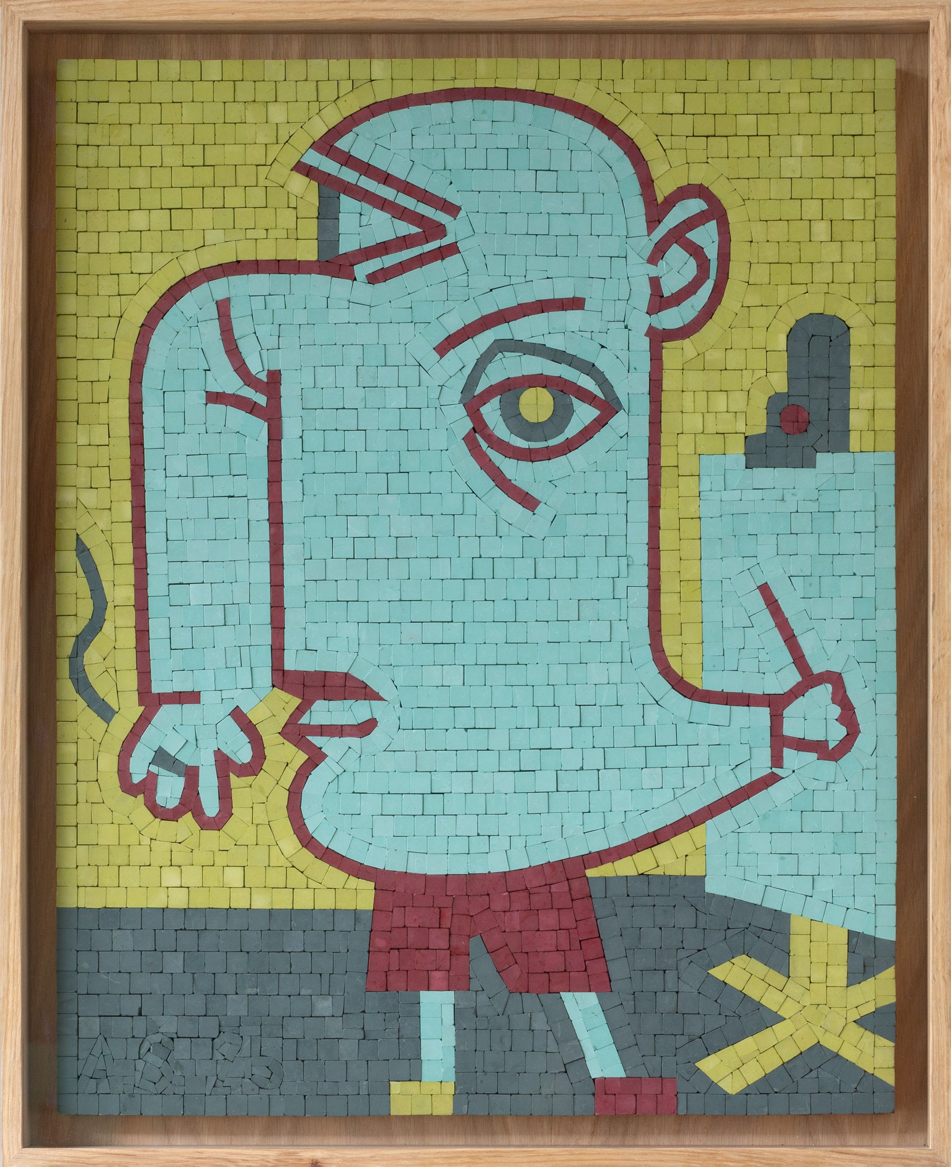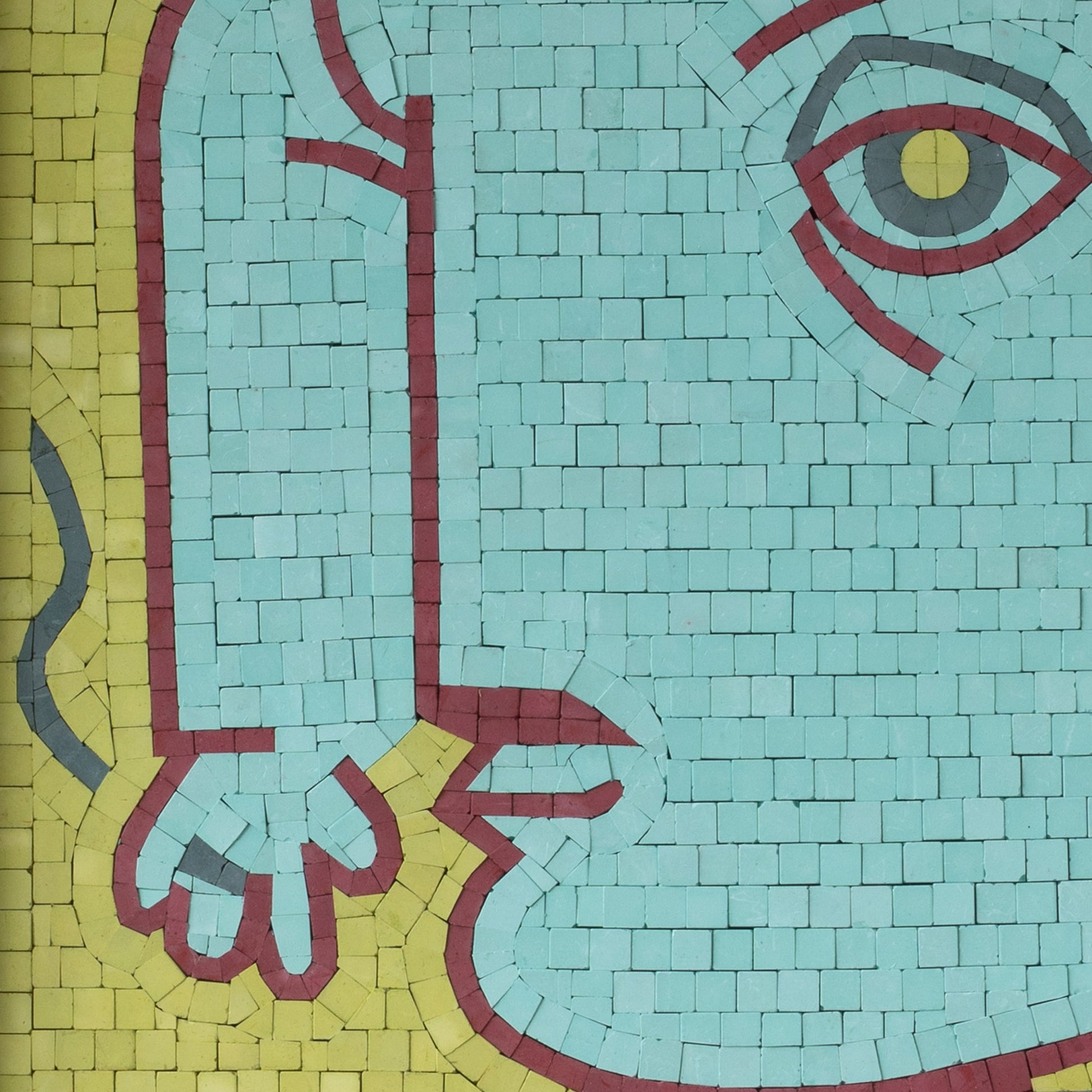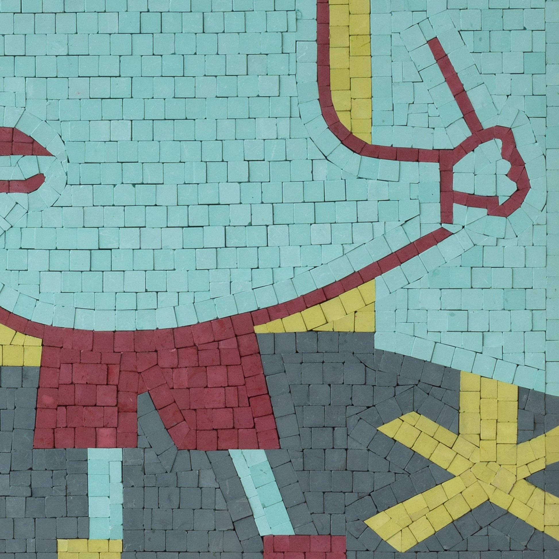 Adam Štech ve Nosoruce spojuje hravou figurální zkratku s precizní mozaikovou prací a vytváří motiv, který je lehce absurdní a zároveň výtvarně velmi čistý. Je to ukázka jeho originálního rukopisu, kde se potkává humor, stylizace a poctivé řemeslo.