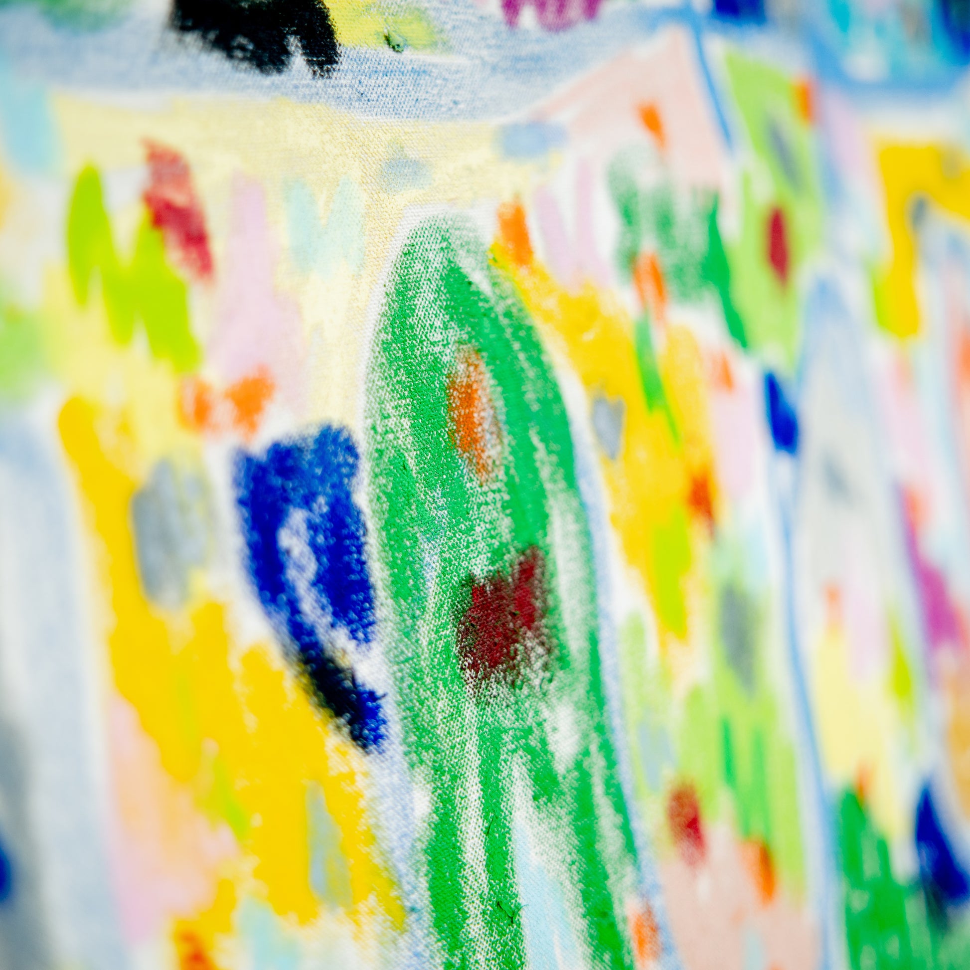 Julius Reichel se v Harmony No. 2 opírá o lehkou pastelovou paletu a nechává barvy volně plynout v rytmické, hravé kompozici. Výsledkem je optimistická malba plná drobných impulsů a energií, která působí svěže a uvolněně.