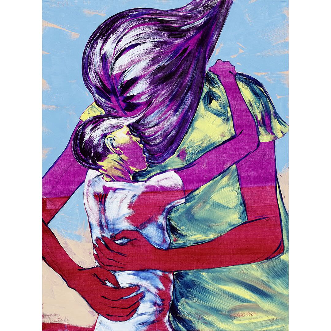 Obraz provokativním způsobem aktualizuje tradiční křesťanské ikonografické schéma z hlediska současnosti. Madona jako symbol pečující matky a mateřství tu prochází malířskou i obsahovou revizí. Modelačně se jedná o expresivní zneklidňující kompozici (opak tradičně zklidňující Madony), v níž je autorem kladen důraz na dynamické a patetické „znejistění viděného“. Máme před sebou povědomý námět, kde se cosi zásadně rozpojuje a významově nesedí. Obraz je barevností těl jakoby schizofrenním způsobem horizontálně rozdělen na dvě roviny, spodní rudá, horní magenta (pro Typlta klíčová!). Obě postavy čelí bočnímu vichru, který se odráží v deformaci účesů. Gesto obejmutí matky a dítěte se komplikuje. Matka postrádá tvář. Tu zahalují vlasy, svébytný atribut ženství, který může mimovolně odkazovat na biblickou postavu Maří Magdaleny, spojenou s pokušením a hříchem. Také atribut dítěte nesedí. Připomíná spíše postavu zvědavého adolescenta, nežli symbol nevinnosti. Gesto obejmutí ze strany matky je mnohem širší, jakoby odkazovalo na absenci dospělého, čili obejmutí partnerské, kterého se nedostává. Mnohoznačnost všeobecně známého výjevu irituje podprahovým odkazem na rozpad rodiny i osamocení postav v rovině zbytnělého ega. Zvláště, když si autor v souvislosti s tímto dílem klade otázku, „je toto ještě láska?“