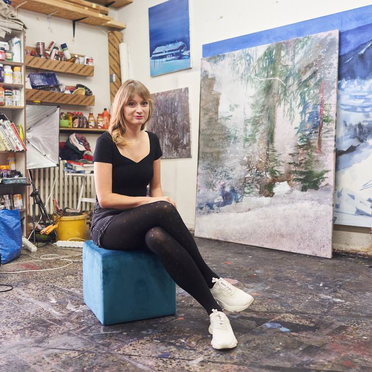 Marta Gruber (nar. 1989), absolvovala v l. 2014-2020 AVU v Praze (ateliér Kresby Jiřího Petrboka a malířský ateliér Roberta Šalandy). Dílo: Okno stromu, 2019, kombinovaná technika, 185 × 139 cm