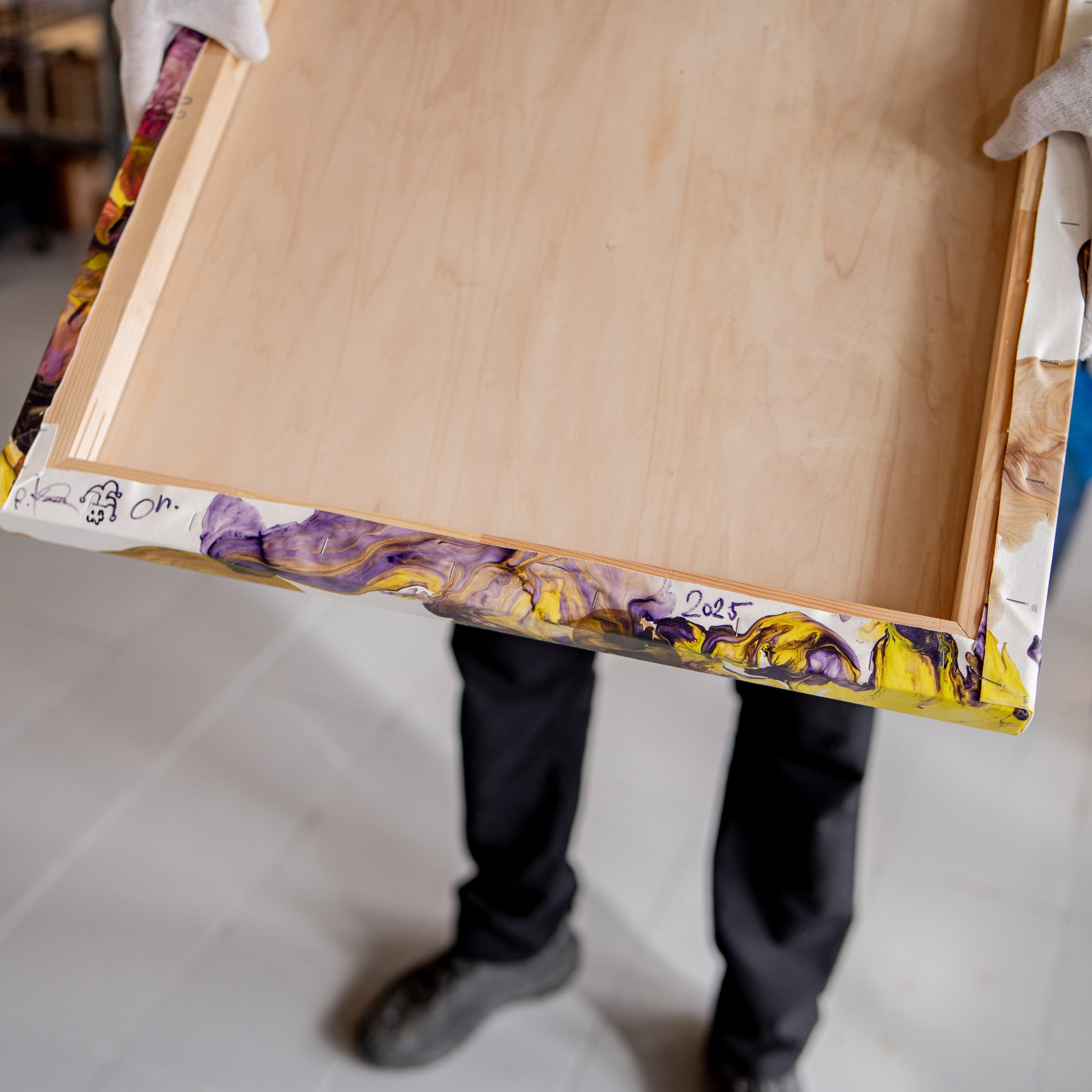 Unikátní způsob malby na vodní hladině jsme vyvíjeli více než 7 let. Základem je proces podobný tradičním metodám, jako jsou japonské suminagaši nebo turecké ebru, při kterých se barvy aplikují na hladinu vody. Na rozdíl od těchto technik však používáme vlastní způsob přenosu obrazu na médium, který dodává výsledným dílům jedinečnou charakteristiku.