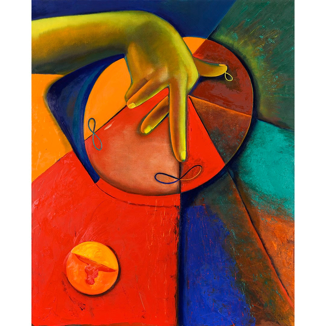 Obraz nazvaný Cifra pochází se série věnované tématu času. Postava má místo hlavy ciferník a namísto ručiček hodin ukazuje čas lidská ruka. Její pohyb se ale odehrává mezi symboly nekonečna, čas neexistuje. Je jenom přítomný okamžik, všechno najednou. Každý konec znamená začátek, a ani světový řád možná není tak lineární, jak by se nám mohlo zdát. Jedná se o intimní, až terapeutický obraz, nabízející možnost otáčet svými (vnitřními) hodinami ve vlastním tempu, s tím, že poznání najdeme stejně někde jinde, než na ciferníku.