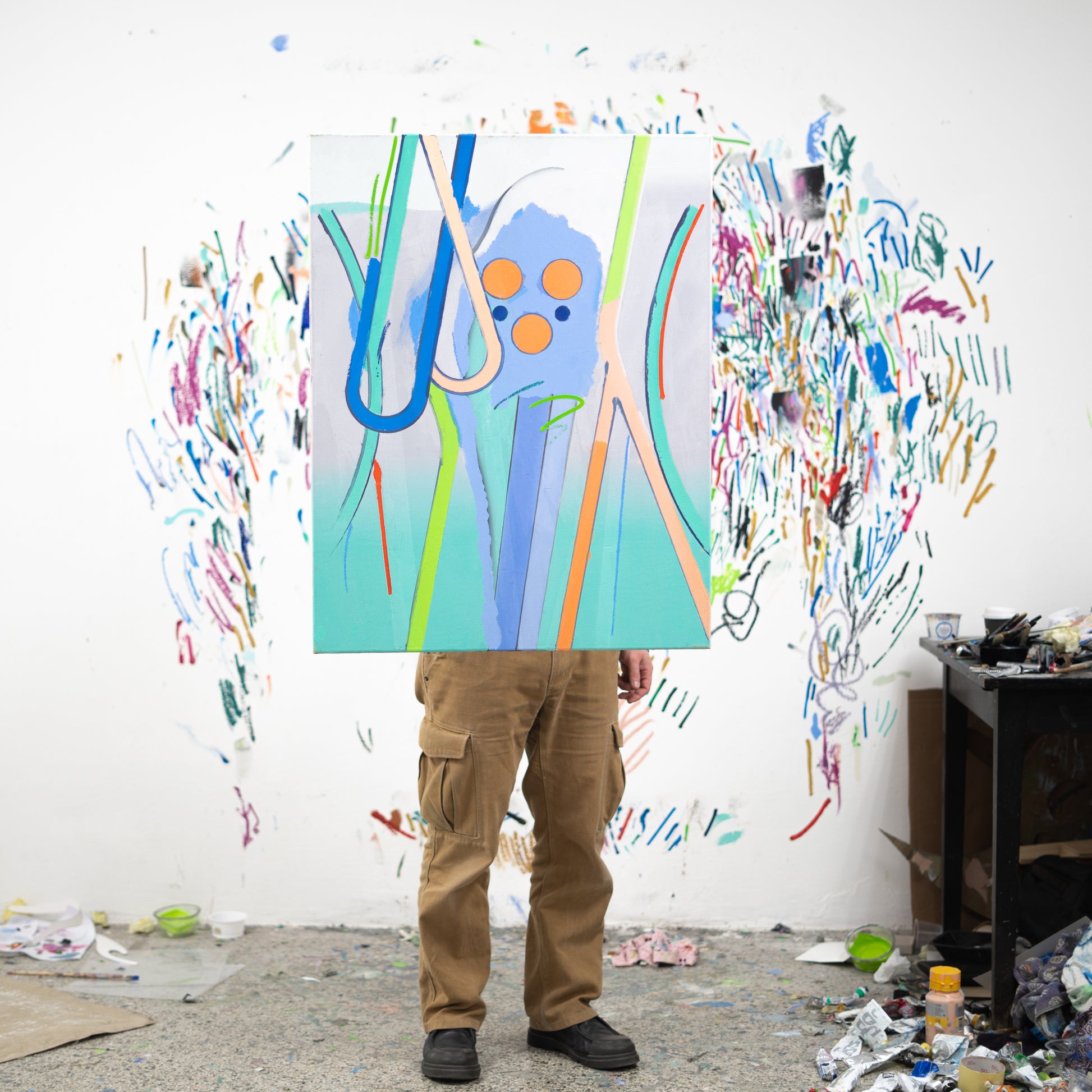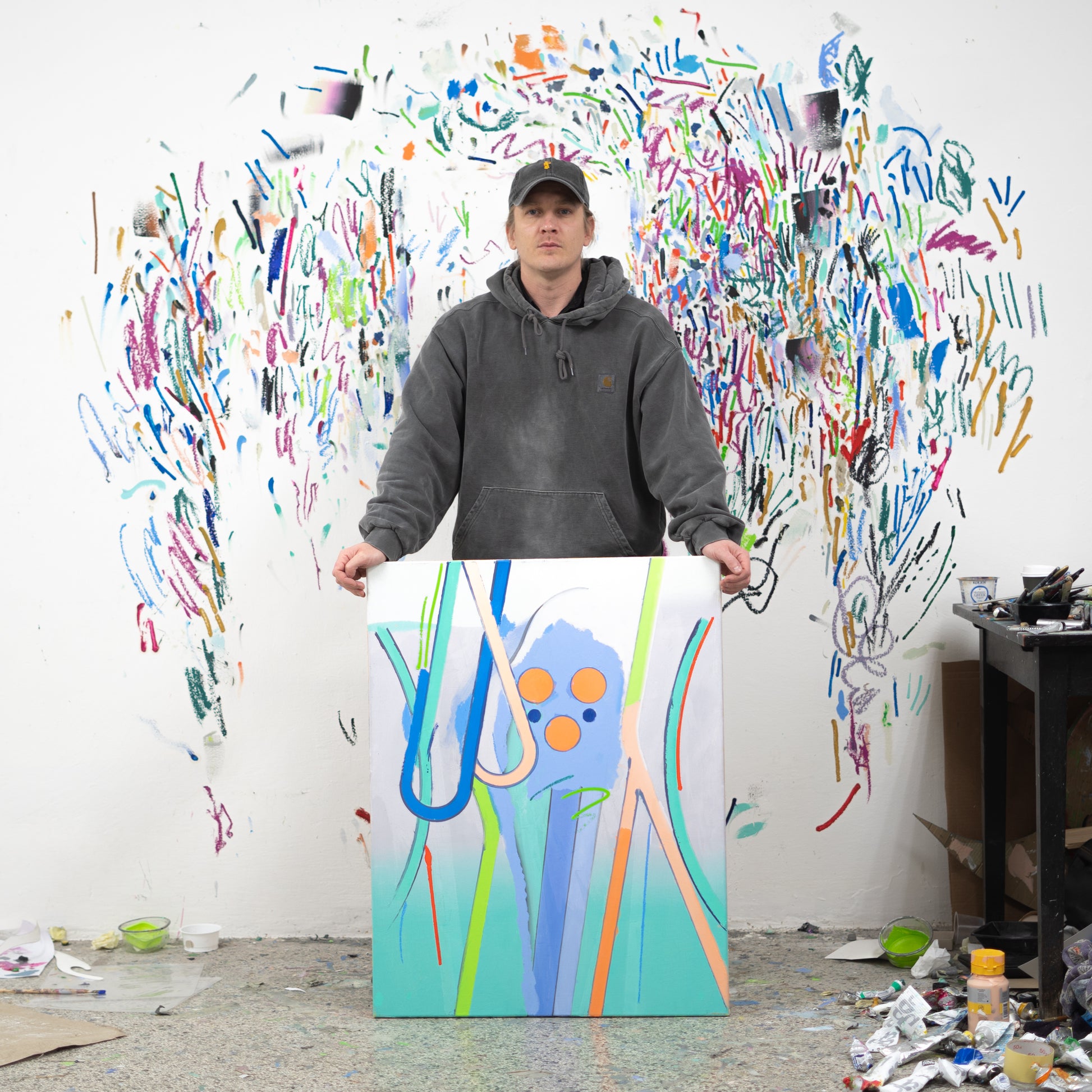 Tomáš Absolon je na české umělecké scéně dobře známý malíř s výrazným rukopisem. Jeho často velkoformátová barevná plátna působí většinou abstraktně, ale vždy je čeho se chytit – inspirují se plakátovou estetikou, jednoduchými symboly a znaky, typografií. Hrají si s úhly pohledu a měřítkem – jako by různé miniaturní fragmenty skutečnosti kolem nás byly tolikrát zvětšené, až výsek reality ztratí původní kontext. Přesto se do něj můžeme ponořit a představovat si, co bylo, nebo co může být kolem, odkud tvary pochází a kam nás vedou. Tomáš Absolon (*1987) je absolvent Akademie výtvarných umění v Praze v ateliéru kresby Jiřího Petrboka. Studoval také v ateliéru hostujícího pedagoga Floriana Pumhösla a na VŠUP u Jiřího Černického. Svou práci hojně vystavuje v České republice a zahraničí. Například v pražské Národní galerii nebo MeetFactory, brněnské Fait Gallery, ale také v Brusselu, Rotterdamu nebo na Mallorce. Je laureátem Ceny kritiky za mladou malbu